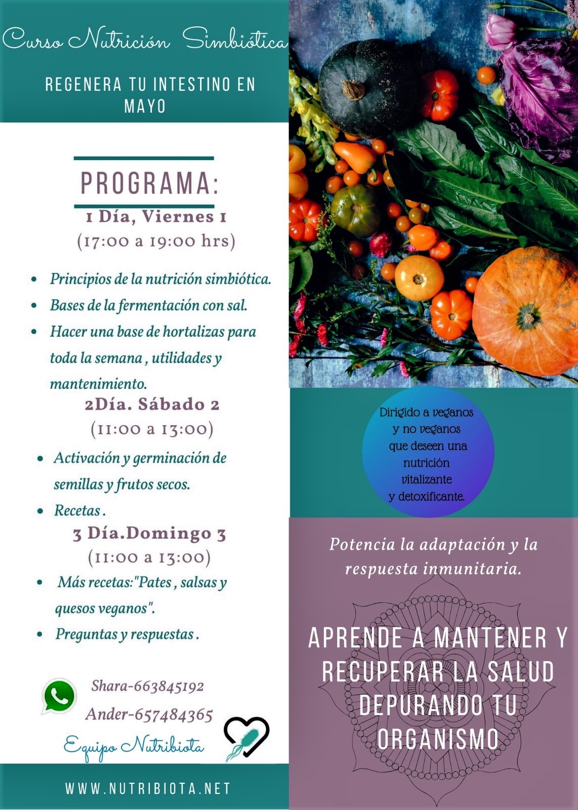 *La Nutrición Simbiótica aplicada a la alimentación humana, es aquella respetuosa con las especies de seres vivos que nos sirven de sustento, así como a las especies de microorganismos que cohabitan en el cuerpo, especialmente en el intestino, y que hacen funciones importantes para la nutrición, la eliminación de tóxicos y agentes dañinos así como el mantenimiento del tejido vital, entre otras. Nutrición Simbiótica también es proteger y nutrir adecuadamente la microbiota en nuestro cuerpo ya que es fundamental para una buena nutrición, el bienestar físico y anímico y el mantenimiento de la salud. Por todo esto se recomienda una dieta con más cantidad de producto vegetal y lo más posible crudo y modificado por microorganismos regeneradores.